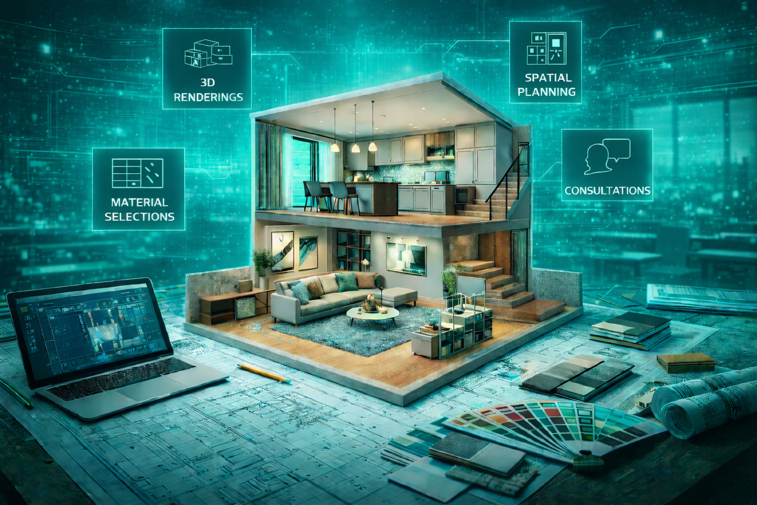 Interior layouts, finishes, and ceiling coordination aligned with MEP terminals—keeping sight lines, lighting, and AC delivery consistent with the design intent.